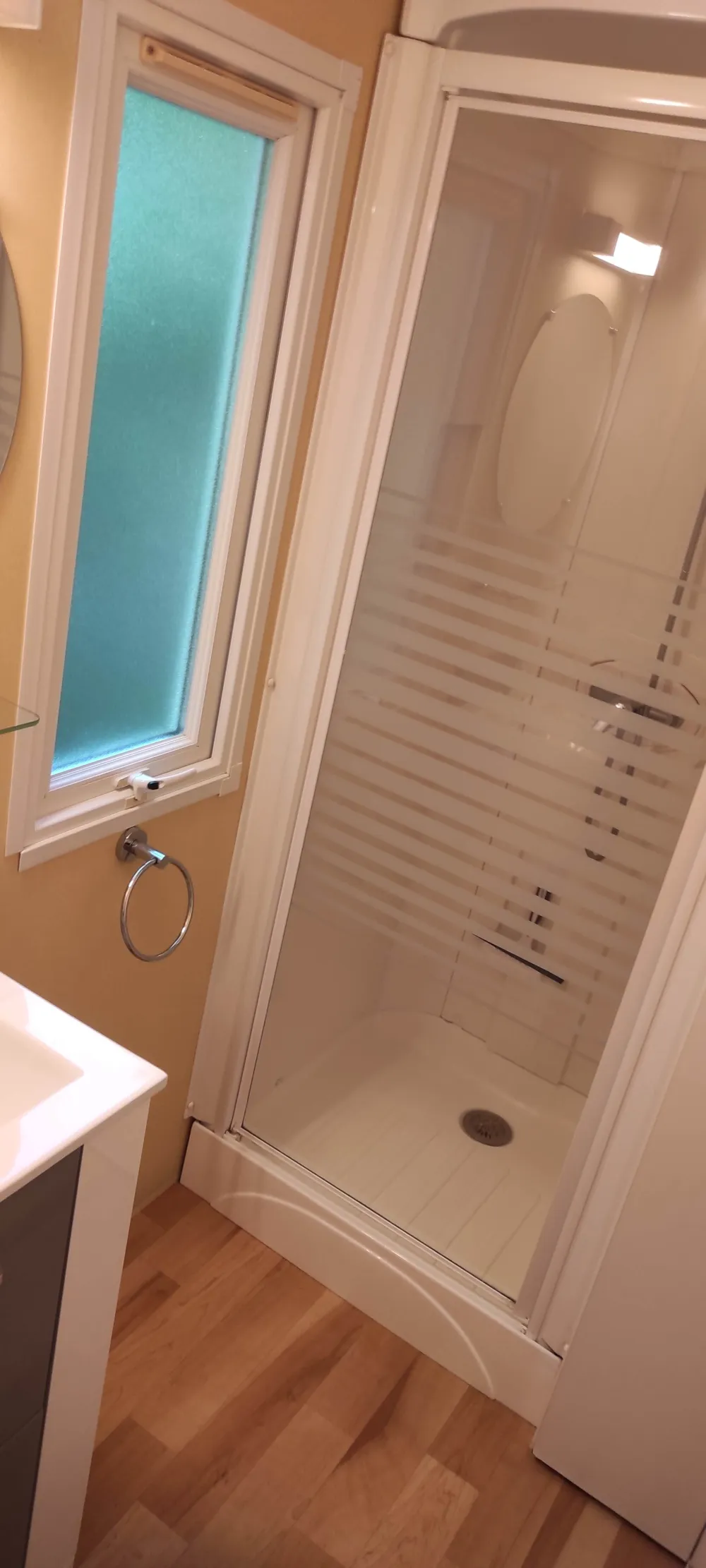 Mobilhome propre et très bon état, etagere de rangement dans chaque chambre. Avec une terrasse, 4 chaises et table,petit dej en face prés, joli ! Un seche linge extérieur. Emplacement pour lzisser une voiture