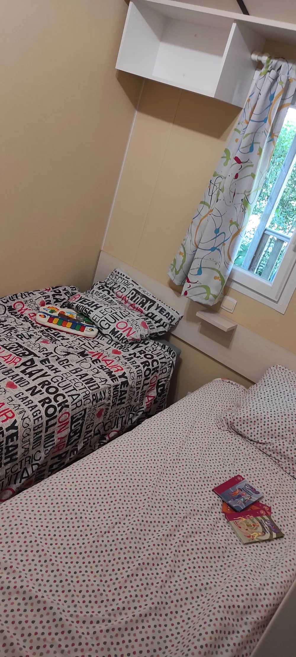 Bien équipé (vaisselle, électroménager, TV, etc.) Literie confortable, nous avons bien dormi. Mobil-home spacieux et fonctionnel, pratique pour une famille. Grande terrasse agréable pour les repas et moments de détente. Bonne disposition des chambres permettant un peu d’intimité. Emplacement calme et ombragé, idéal pour se reposer. Proximité avec les infrastructures du camping (piscine, aire de jeux, commerces).