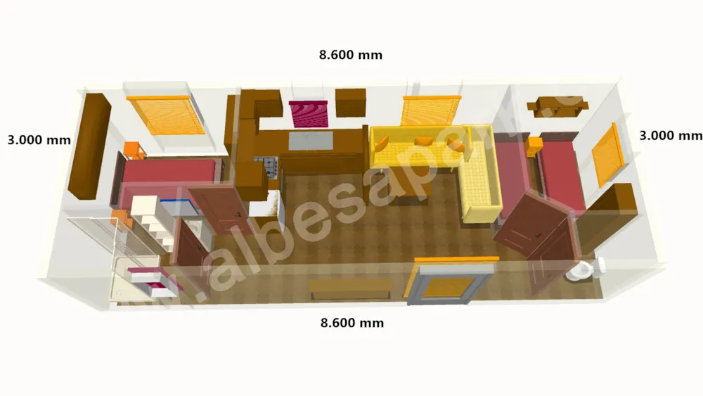 25M2 Mobil Home, Covered Terrace, Trigano Mermaid Model, Television, 2 Bedrooms