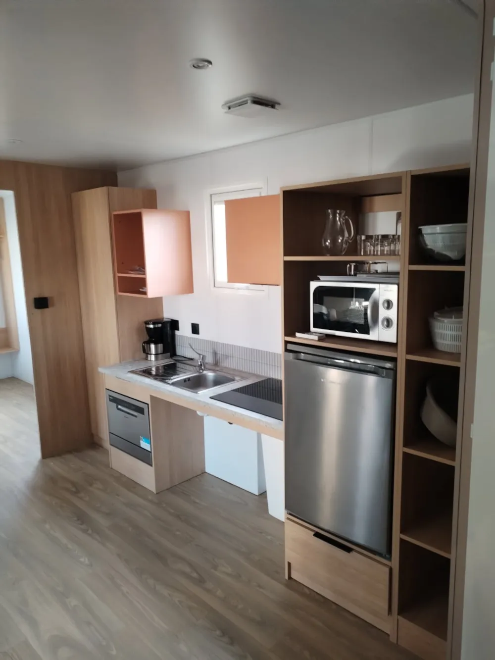 The Vonnas campsite is pleased to offer its new mobile home, designed to accommodate up to 4 people in a comfortable and accessible setting.
