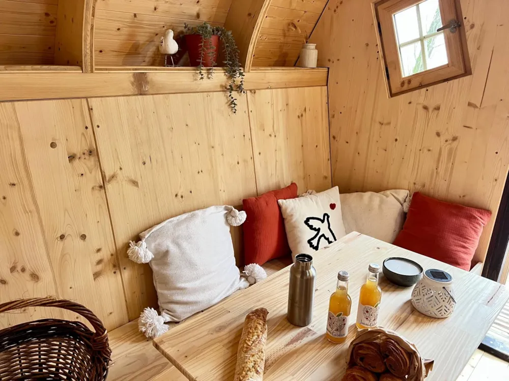 Vous apprécierez la terrasse abritée au bord de l’eau connectée à la cabane par une passerelle. Petit coin cosy pour partager les repas. A votre disposition une barque privative pour aller vous balader librement sur l’eau. Un moyen original aussi, de vous rendre à la piscine, au bar ou à la réception de l’autre coté de la rive.