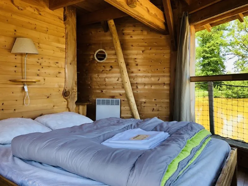Sa forme héxogonale et ses grandes vitrées vous offre une vue panoramique directement depuis votre lit. Profitez et marmorter jusqu’a ce que les canards de barbarie viennent vous rappeler que c’est l’heure du petit déjeuner, votre panier vient d’être livré.