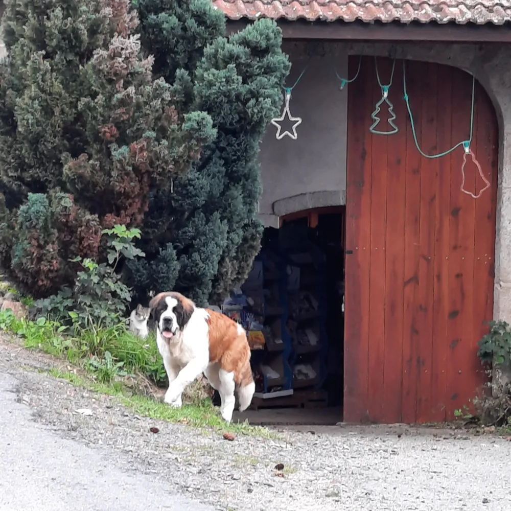 L'entrée des chambres donne sur un ancien hangar entièrement restauré et décoré avec des outils agricoles d’autrefois, créant une atmosphère unique de l’histoire de la ferme que Chantal aura le plaisir de vous raconter.